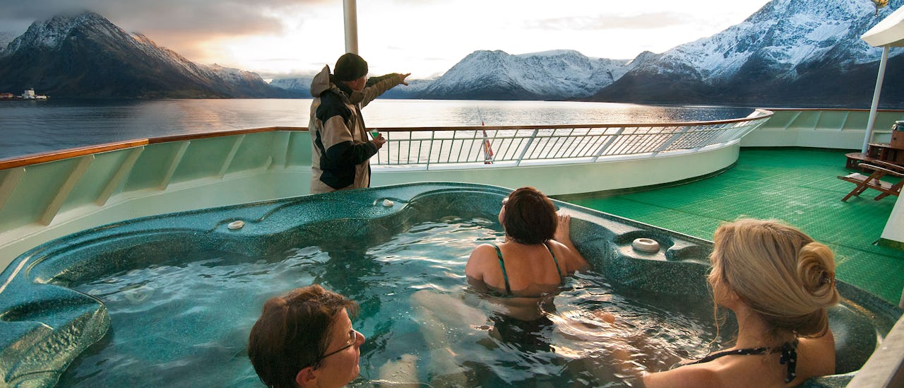 Relax in comfortable loungers with unparalleled views of the unforgettable natural landscape, or unwind in an outdoor jacuzzi. Soak in the bubbles of the ship’s two outdoor hot tubs while admiring the stunning coastal views. Stay active in the fitness room before indulging in a soothing steam in the sauna.