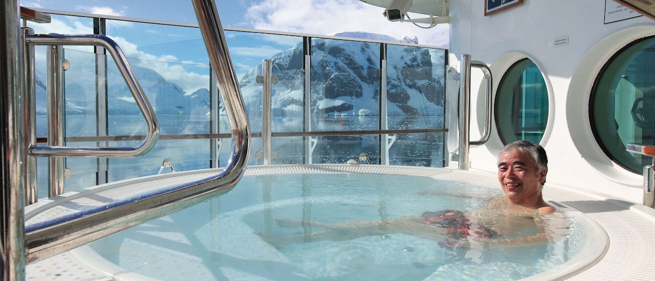 Relax in two hot tubs on deck 7