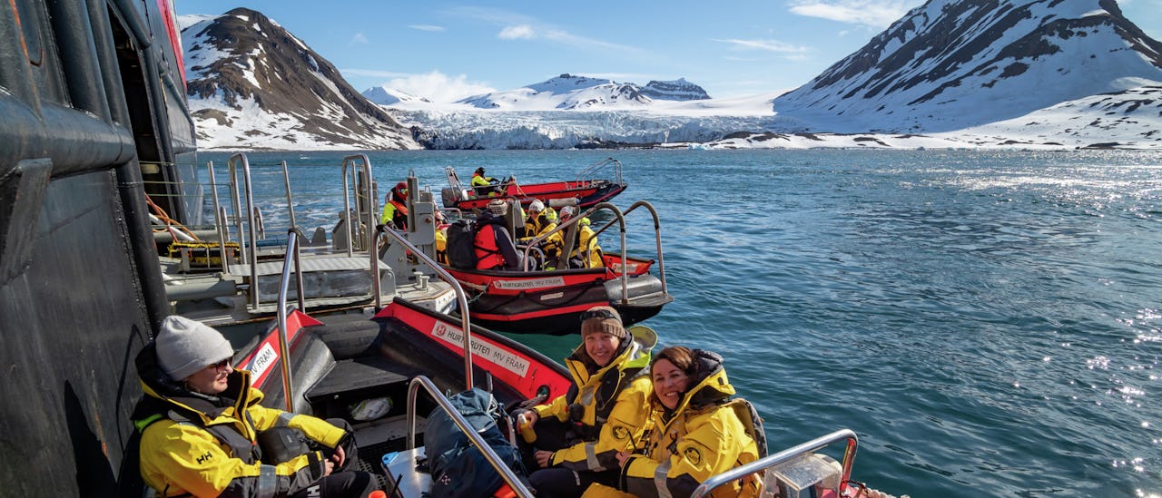 Fram features a fully equipped deck of expedition equipment. Travel safely to land in safe Arctic Circle boats.