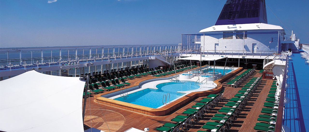 Experience wonderful sea views from a wide range of pools, spa and gym at the top of the ship.