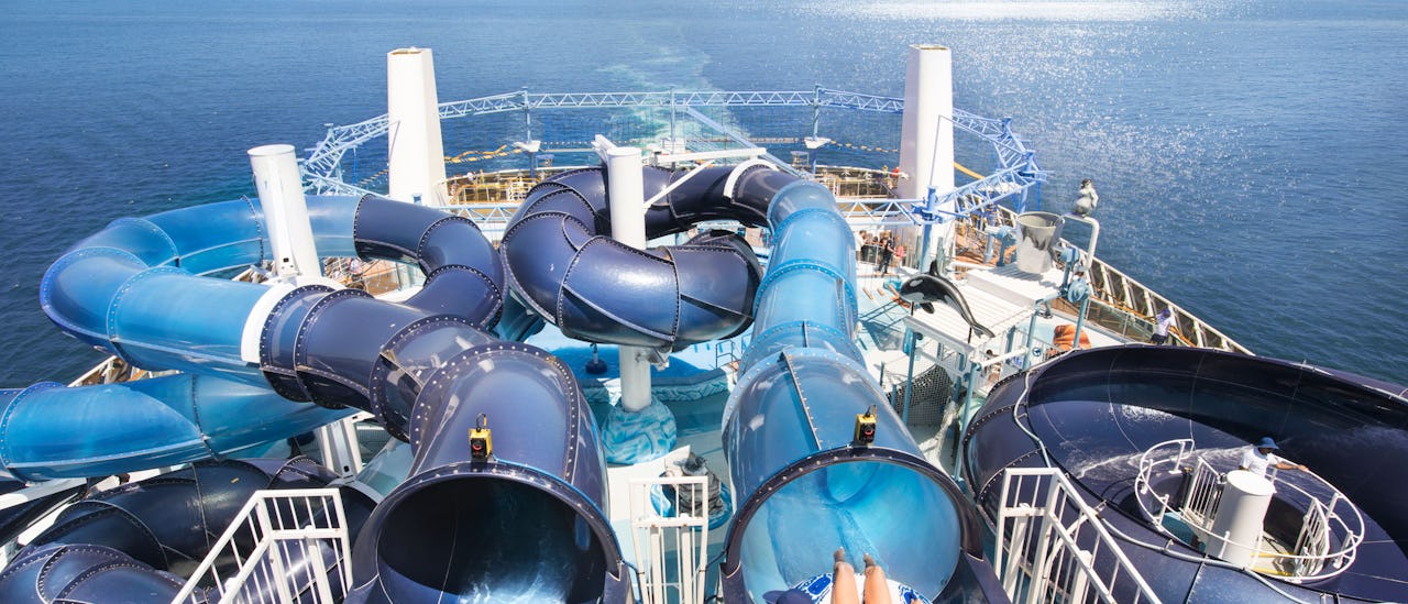 The pool deck is designed in two areas with pools among the largest at sea.