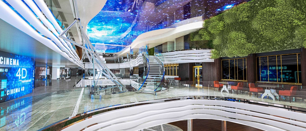 Stroll through the indoor promenade, featuring the iconic LED Dome